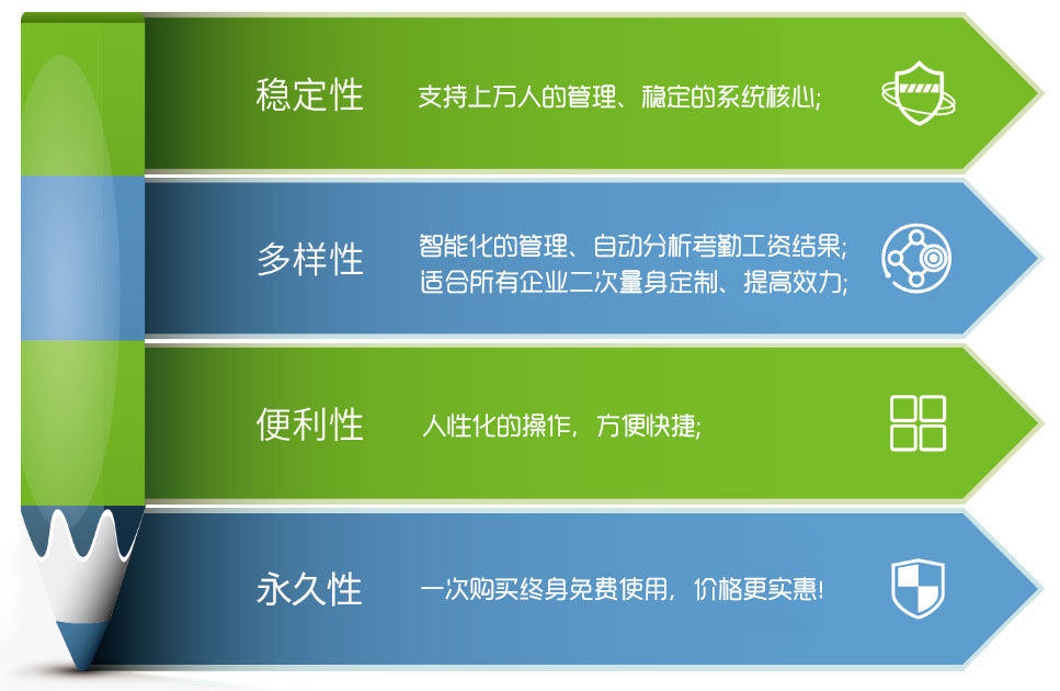 我们诶诺基人力资源管理系统是由众多资深的人力咨询顾问和从实践中磨练出来的实战专家设计的,集成现代先进的人力资源管理理念和近几千家中外企业的现代管理思想于一身。它采用各种先进的设计思想和软件技术,能满足客户的各个管理层在实际人力资源管理中长期发展的需要。使人力资源部门从薪资福利与人力资源信息管理的繁琐重复的日常工作中解脱出来,我们系统核心的智能技术(按3000人的企业分析整个月的考勤,在3分左右完成,这样算下来差不多有40、50万条左右的考勤记录,1分或10几秒内就可以完成工资(薪资)结果分析),有的同行系统处理一个月考勤需要半个小时以上、还经常死机,而且报表显示的数据结果还达不到要求,也不能灵活定制普通或高级报表等,还有的同行系统会出现什么BUG、错误提醒、经常需要升级、乱收费等,而我们的客户如果后续制度变动或者需要修改算法等,一般能在1小内能完成的都是免费处理,如果是需要增加特殊的功能,系统还支持二次开发平台。